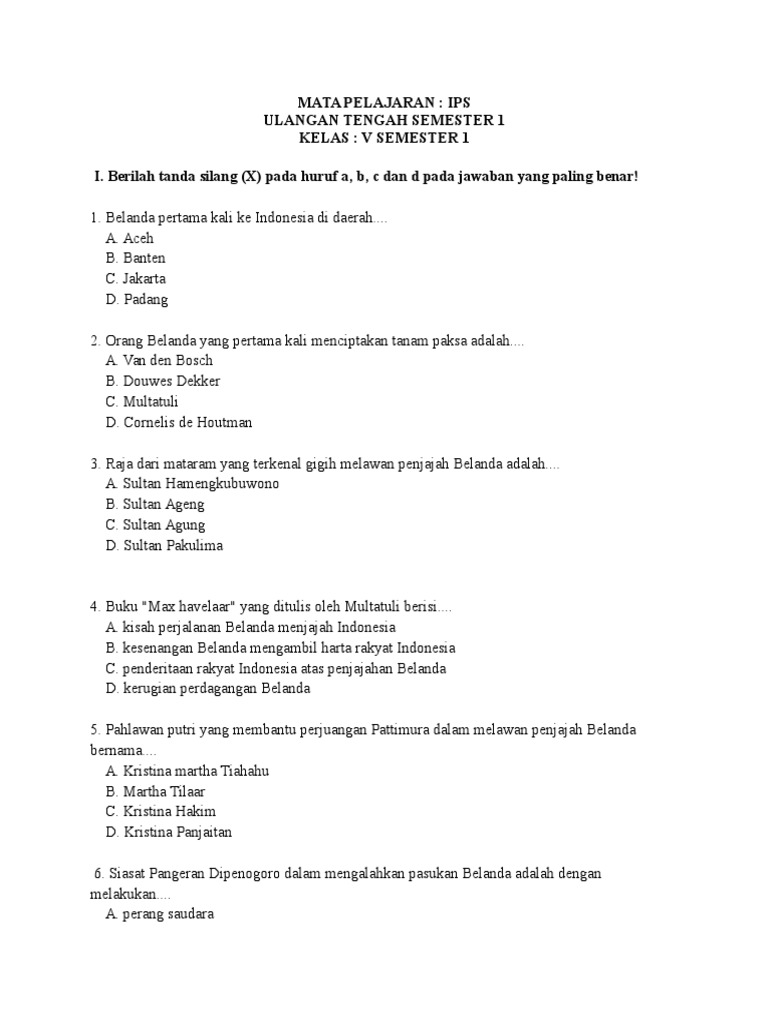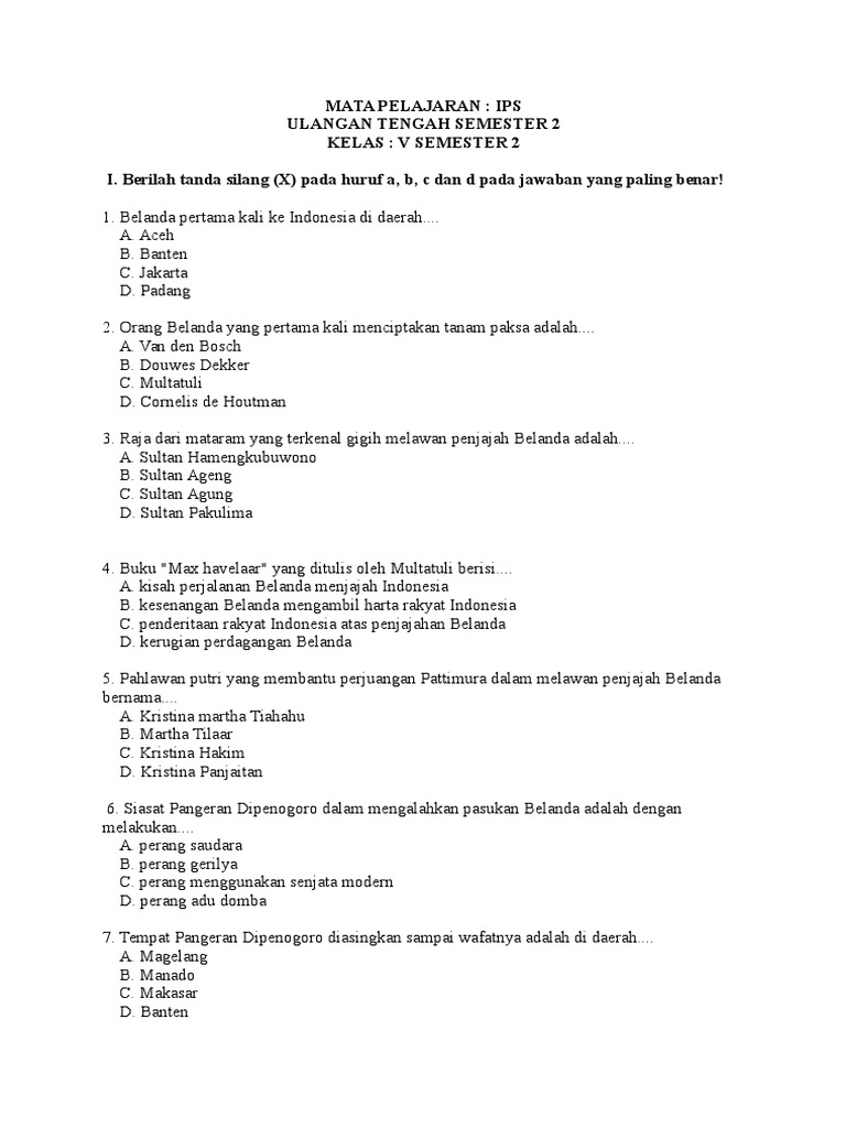 SOAL IPS KELAS 5 SD Perjuangan Melawan Penjajah Dan Pergerakan Nasional Bagian 2 IPS Kelas 5 SD Kelas 5 Bidang Studi. BERILAH TANDA SILANG X PADA HURUF A B C ATAU D PADA JAWABAN YANG BENAR. Demikian ulasan Materi Perlawanan terhadap Persekutuan Dagang IPS Kelas-8 K13 Revisi Terbaru semoga bermanfaat.