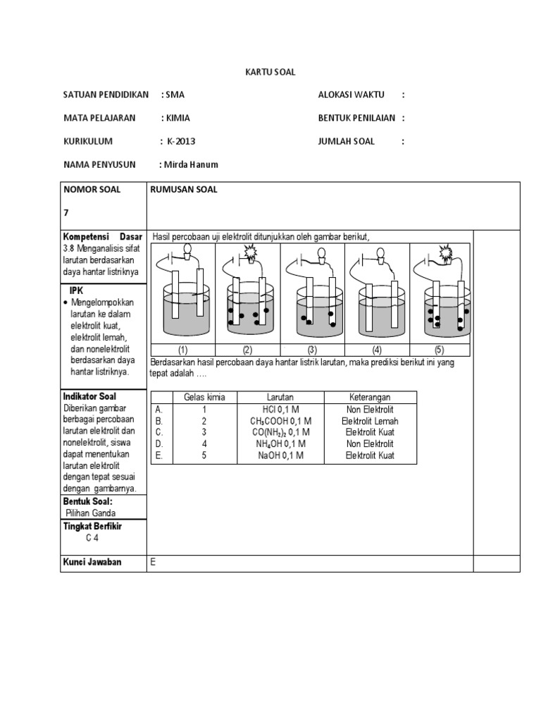 Contoh Soal Kimia Penggalan Vi Larutan Elektrolit Dan Nonelektrolit Dan Jawabannya Sma Ma Kelas X Idn Paperplane