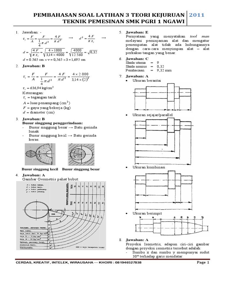 Pembahasan Soal Latihan 3 Teori Kejuruan Pemesinan Pdf
