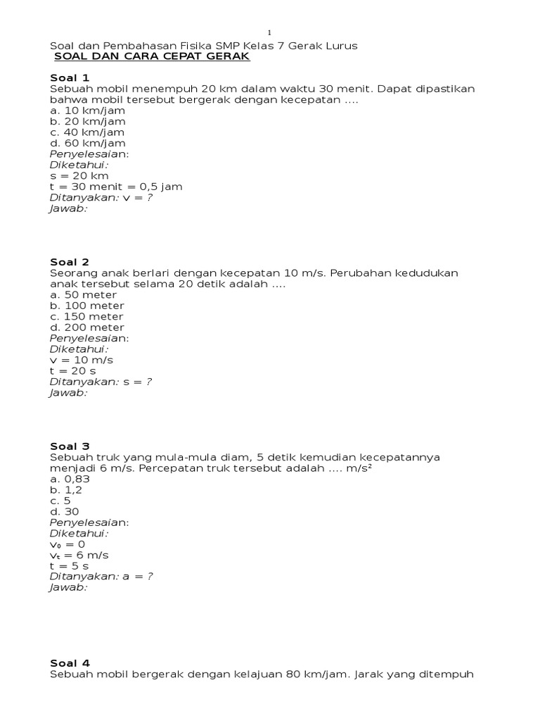 Soal Fisika Kelas 8 Gerak Lurus Download File Guru