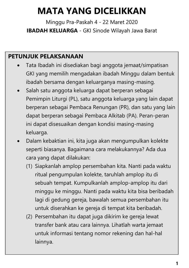 Liturgi Ibadah Keluarga Minggu 22 Maret 2020