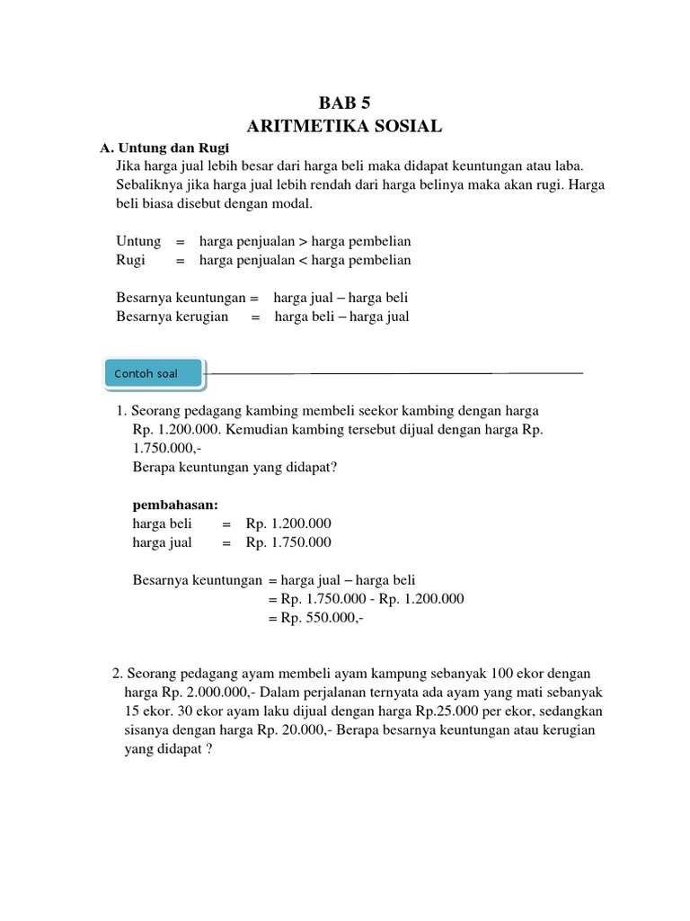 16 Contoh Soal Aritmatika Sosial Dan Pembahasan Kumpulan Contoh Soal
