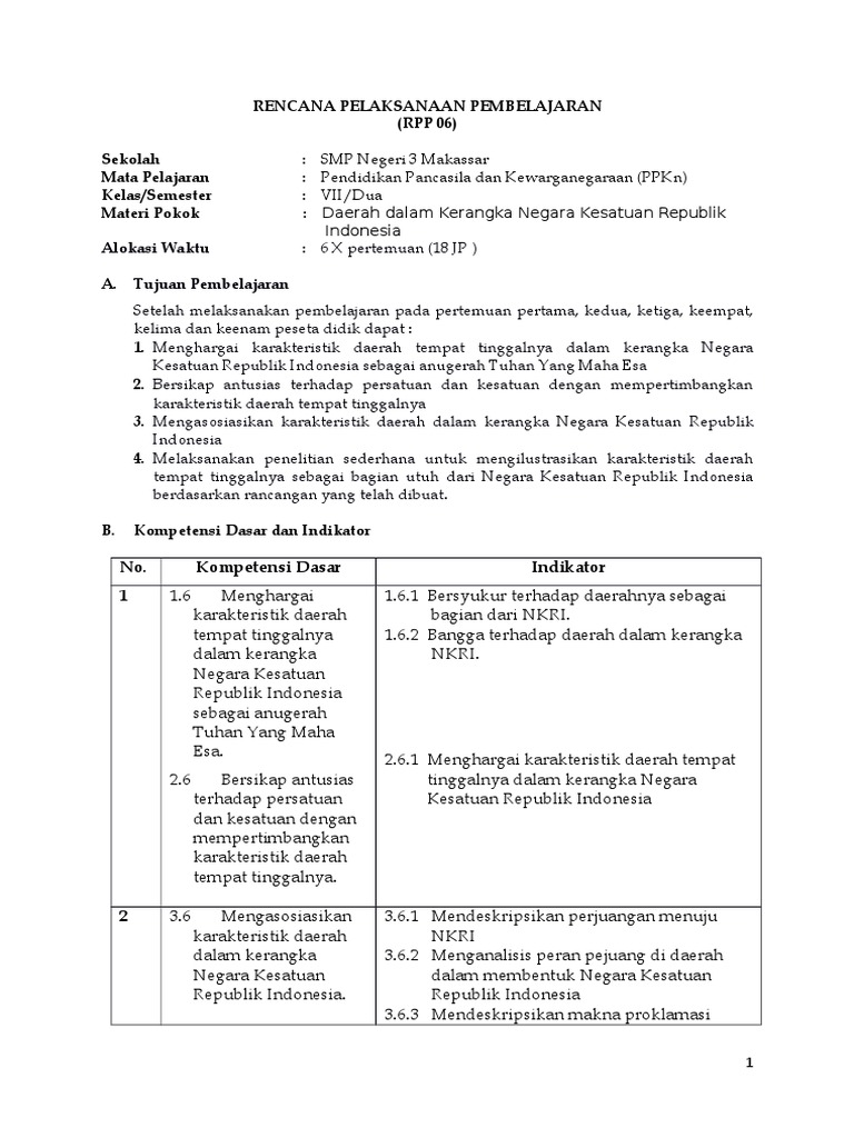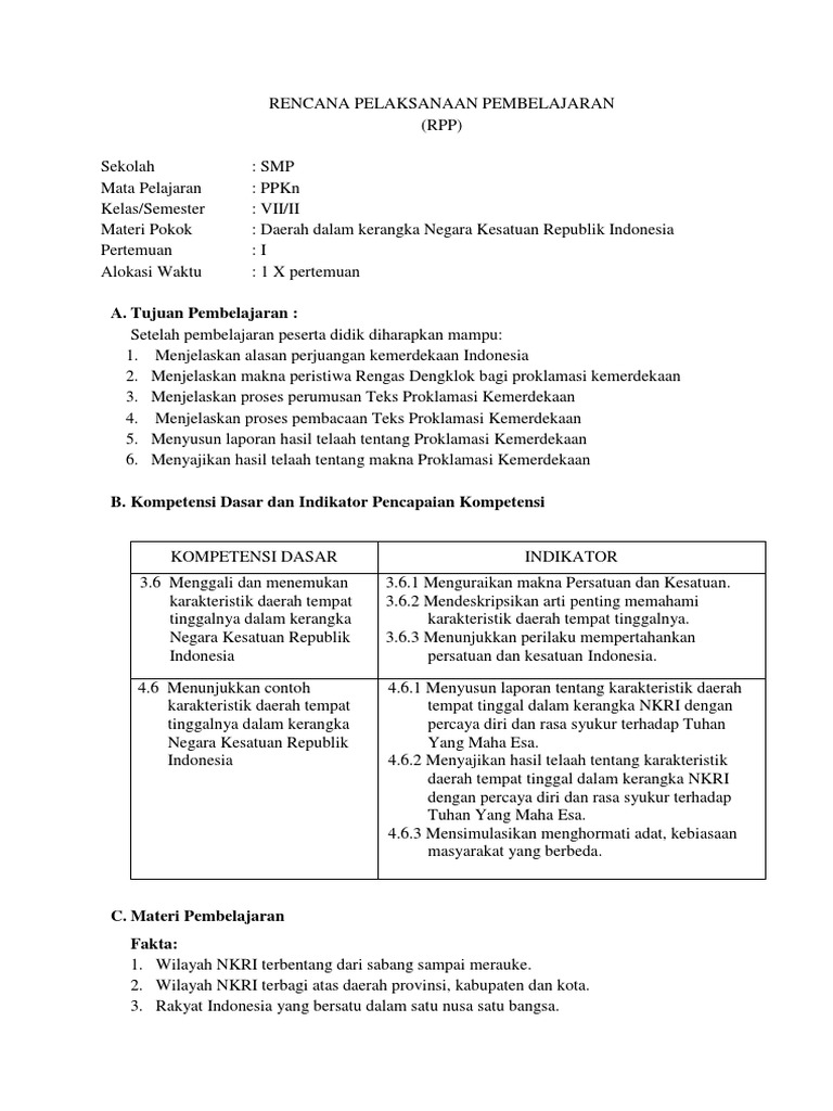 Rpp Ppkn Bab 6 Kelas 7 Pertemuan I