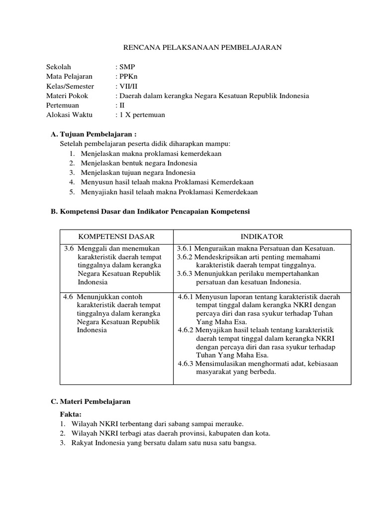 Rpp Ppkn Bab 6 Kelas 7 Pertemuan Ii